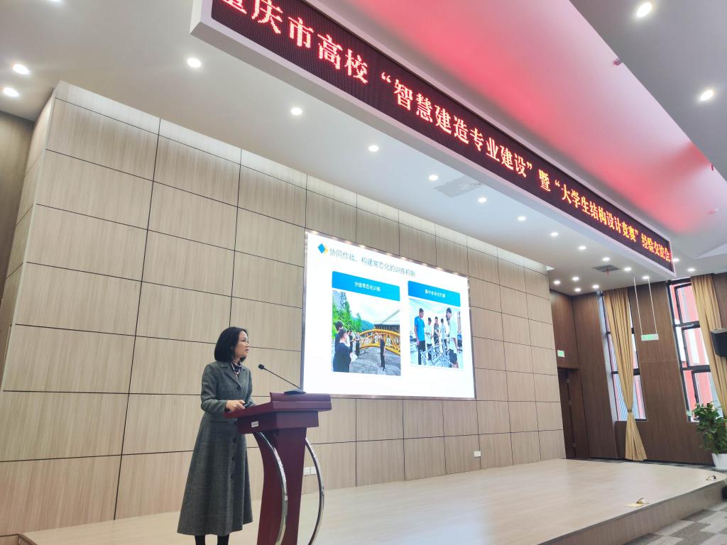 在大學(xué)生結(jié)構(gòu)設(shè)計(jì)競(jìng)賽經(jīng)驗(yàn)交流會(huì)上,我校交通與市政工程學(xué)院院長(zhǎng)黃春蕾作為重慶市優(yōu)秀比賽團(tuán)隊(duì)代表,進(jìn)行了結(jié)構(gòu)設(shè)計(jì)競(jìng)賽組織經(jīng)驗(yàn)分享。黃院長(zhǎng)從學(xué)校-二級(jí)學(xué)院兩級(jí)競(jìng)賽保障制度、技能競(jìng)賽環(huán)境的創(chuàng)設(shè)、全方位協(xié)同作戰(zhàn)機(jī)制建立、常態(tài)化訓(xùn)練進(jìn)行了經(jīng)驗(yàn)做法分享。