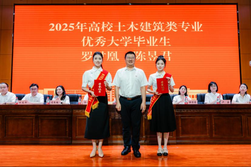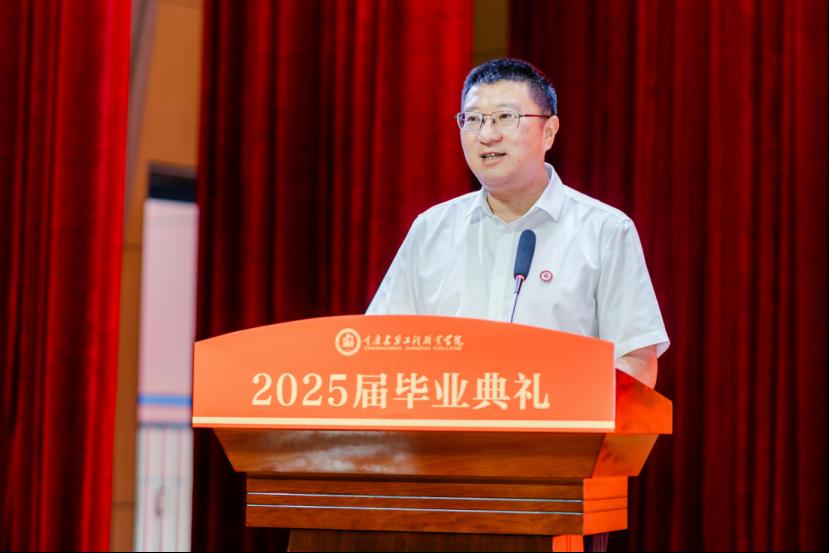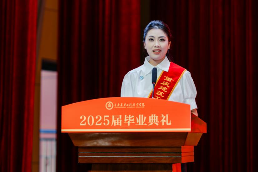 我校智能建造學院2022級學生羅尹凰作為畢業(yè)生代表發(fā)言。她深情回顧了在校學習生活的點點滴滴,字里行間表達了對母校培育之恩、師長教誨之情和同窗友誼的感激。她表示,將始終銘記“厚德 篤學 求實 創(chuàng)新”的校訓精神,把個人理想融入國家發(fā)展大局,在新時代征程中書寫青春華章。教師代表張秉坤老師為畢業(yè)生送上溫馨祝福,勉勵大家要堅守初心,讓夢想的火種永遠熾熱;保持“OTA升級”,讓成長永不止步;心懷陽光,讓樂觀成為人生的底色。