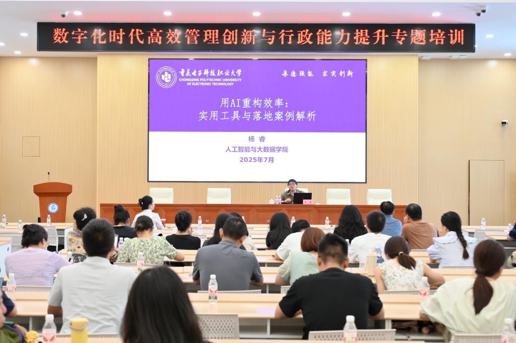 為進(jìn)一步提升干部文稿寫作水平,增強(qiáng)履職能力,7月14日,我校邀請重慶市政府辦公廳文秘處副處長陶俊杰、重慶電子科技職業(yè)大學(xué)人工智能與大數(shù)據(jù)學(xué)院云計(jì)算系教師楊睿到校作數(shù)字化時(shí)代高校管理創(chuàng)新與行政能力提升專題培訓(xùn)。黨政辦公室主任茍寒梅主持培訓(xùn),全校約200名行政管理人員參加培訓(xùn)。