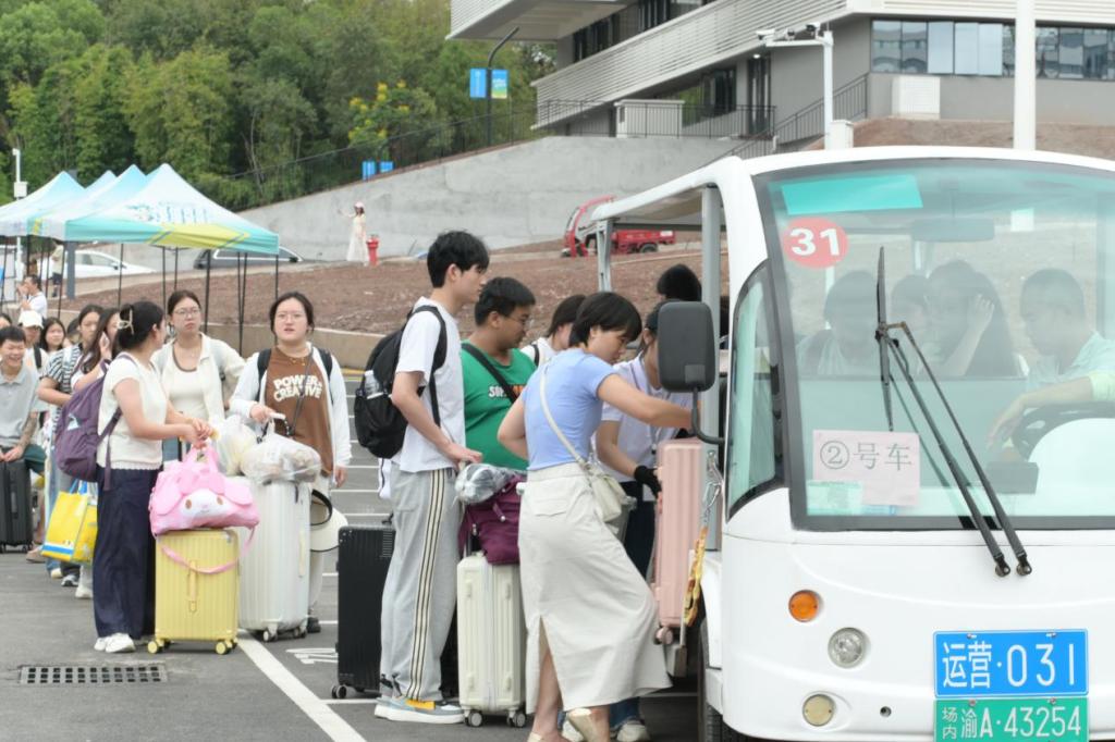 學(xué)校對今年的迎新工作極為重視,面對兩校區(qū)運(yùn)行的新情況,提前著手、精心籌備、周密規(guī)劃,制定了科學(xué)詳盡的迎新方案。學(xué)校各部門、全體師生員工齊心協(xié)力,積極投入到迎新準(zhǔn)備工作中。為方便新生,提前開通線上選床位、繳費(fèi)等便捷通道,并詳細(xì)發(fā)布報到指南,涵蓋從交通路線到入學(xué)手續(xù)辦理的每一個細(xì)節(jié)。在重慶北站、重慶西站、重慶東站等多個交通樞紐,都安排了熱情專業(yè)的志愿者團(tuán)隊(duì)接站,引導(dǎo)新生乘坐迎新車輛前往學(xué)校報到。同時,考慮到兩校區(qū)運(yùn)行,特別安排了廣陽校區(qū)與東站校區(qū)之間的穿梭車,方便新生及家長往來。