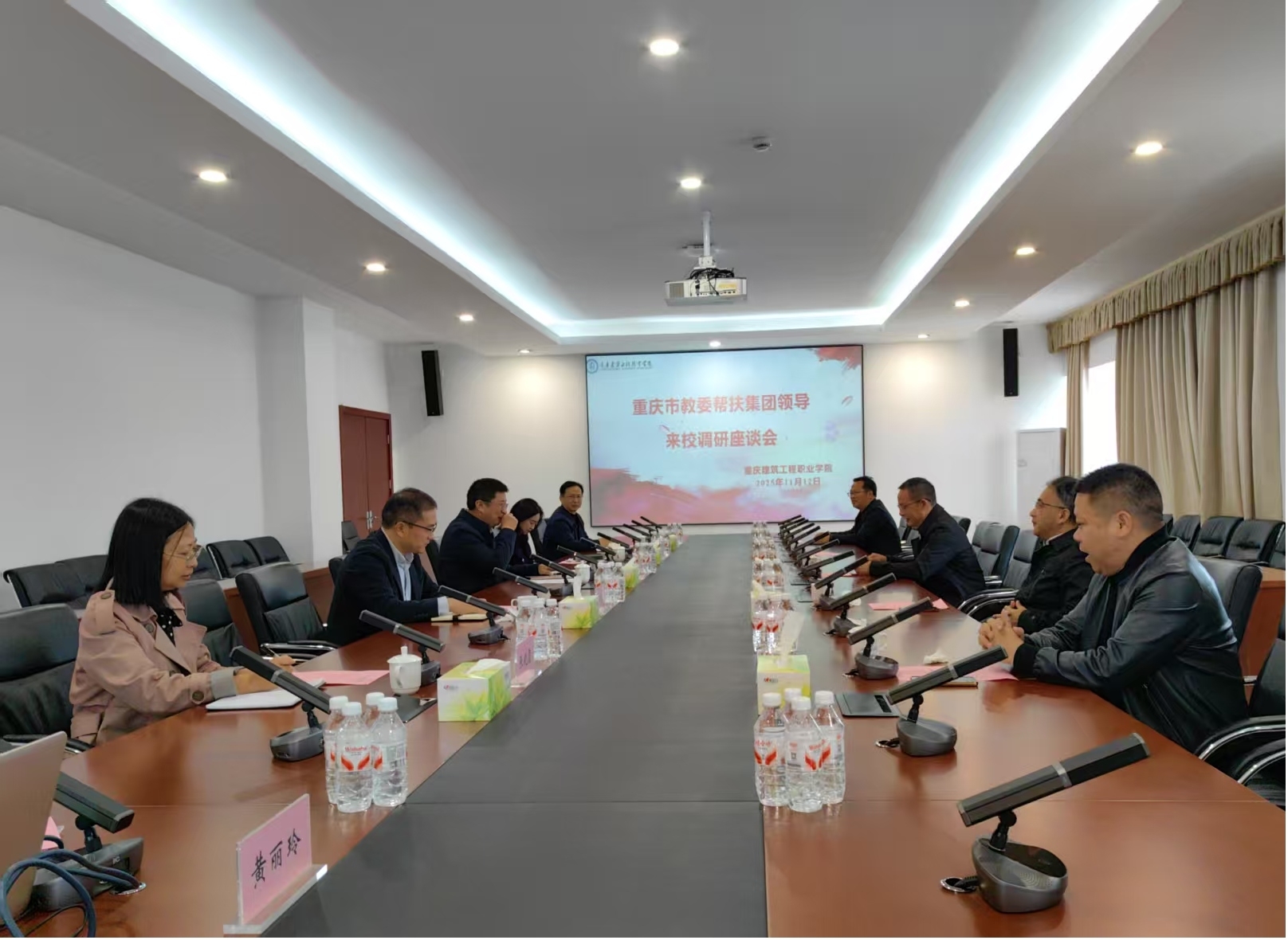 2025年11月12日上午,重慶第二師范學(xué)院黨委常委副院長、市教委幫扶集團(tuán)駐萬州區(qū)恒河鄉(xiāng)工作隊(duì)隊(duì)長溫萬良,市教委統(tǒng)戰(zhàn)處處長、副隊(duì)長郭冠仁一行5人來校調(diào)研座談。學(xué)校黨委副書記、校長鄭周練,黨政辦、通識教育學(xué)院、校工會等部門負(fù)責(zé)人參加座談會,會議由黨委副書記郭光亮主持。
