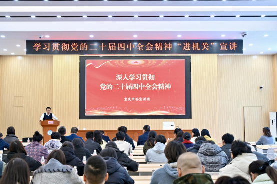 根據(jù)市直機(jī)關(guān)工委關(guān)于黨的二十屆四中全會精神宣講工作統(tǒng)一安排,12月5日下午,學(xué)校在思政廳舉行學(xué)習(xí)貫徹黨的二十屆四中全會精神“進(jìn)機(jī)關(guān)”宣講報(bào)告會。市委黨史研究室副主任、機(jī)關(guān)黨委書記周廷勇應(yīng)邀作專題宣講,學(xué)校黨委副書記郭光亮主持會議。