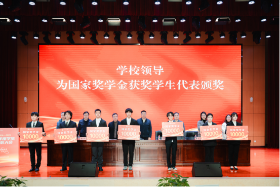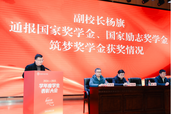 在莊嚴(yán)的國歌聲中,大會拉開帷幕。楊旗通報(bào)了國家級競賽、國家獎學(xué)金、國家勵志獎學(xué)金等獲獎情況,并宣讀了校級獎學(xué)金、校級先進(jìn)集體和個人表彰決定,與會領(lǐng)導(dǎo)為受表彰的先進(jìn)集體和個人頒獎。