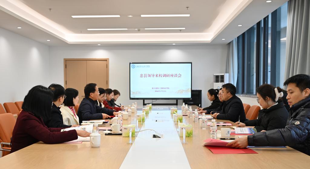 2026年1月23日上午,忠縣紀(jì)委書記潘仕軍率領(lǐng)磨子土家族鄉(xiāng)人民政府、駐鄉(xiāng)工作隊、磨興辦和幫扶企業(yè)等單位人員來校對接鄉(xiāng)村振興對口幫扶工作。學(xué)校黨委書記吳國雄主持召開工作座談會,紀(jì)委書記郭雪蓮,黨委組織部、校工會、校團(tuán)委、財經(jīng)商貿(mào)學(xué)院、通識教育學(xué)院等單位負(fù)責(zé)人參加會議。