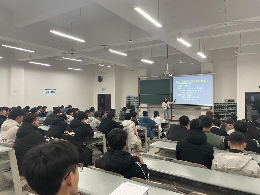 11月25日蔣燕老師在5教107教室開展的“走進數(shù)學建模”為主題的講座中,就數(shù)學建模大賽的歷史、內(nèi)容和競賽程序分別進行了介紹,對歷年的參賽情況和獲獎情況做出了詳細統(tǒng)計和說明,分享了大量有關數(shù)學建模的資料和寶貴經(jīng)驗,使同學們對數(shù)學建模有了充分的了解,增強了同學們學好數(shù)學,用好數(shù)學的信心。同時,對同學們的平時學習和培訓,以及如何做好參賽準備也給出了意見和建議。