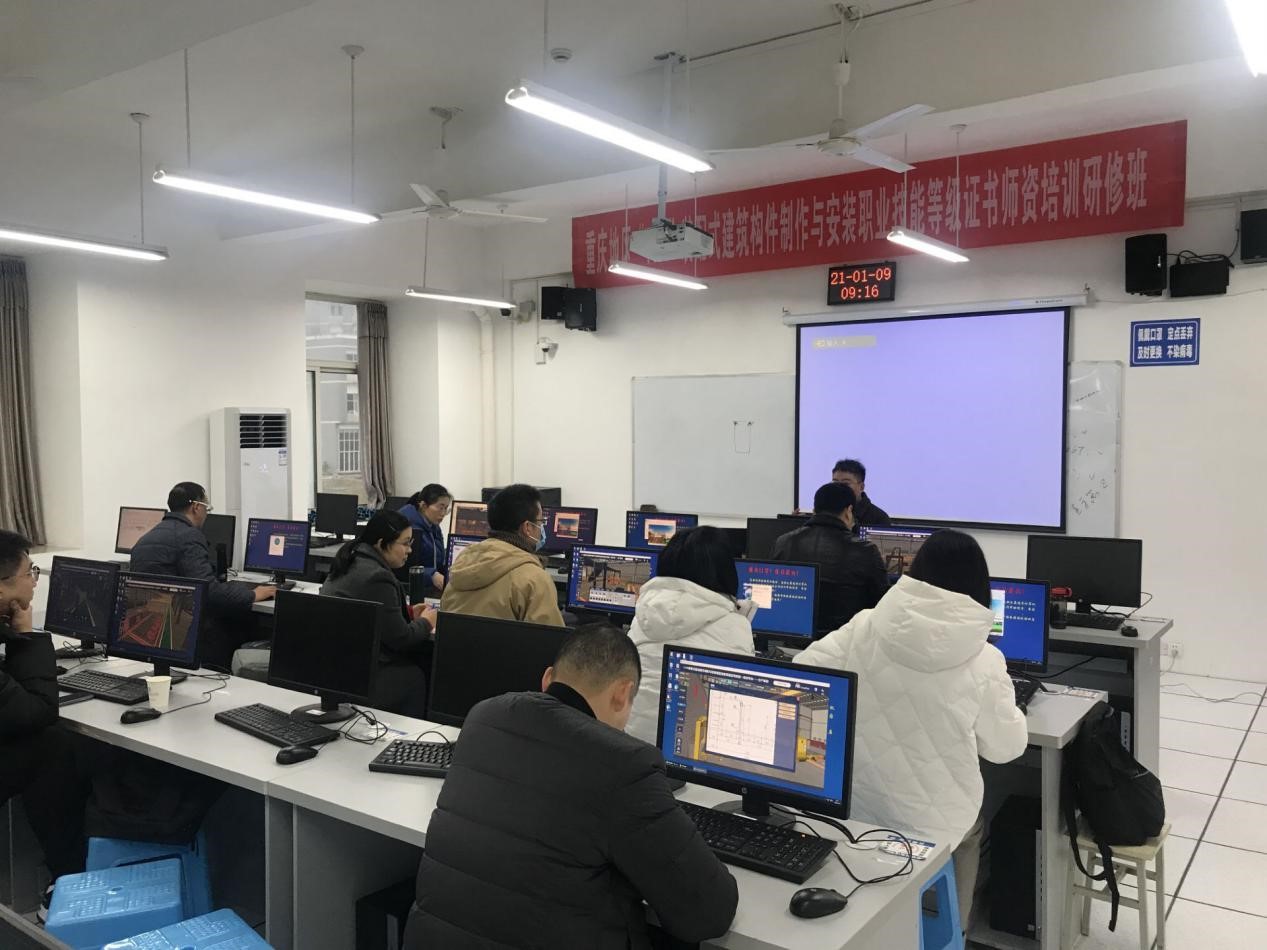 2021年1月 6 日—1月 10 日由廊坊市中科建筑產(chǎn)業(yè)化創(chuàng)新研究中心主辦,重慶建筑工程職業(yè)學院承辦,重慶天魅信息科技有限公司、山東新之筑科技有限公司、杭州嗡嗡科技有限公司協(xié)辦的2021年重慶地區(qū)首屆“1+X”裝配式建筑構件制作與安裝職業(yè)技能等級證書師資培訓在重慶建筑工程職業(yè)學院圓滿落幕。