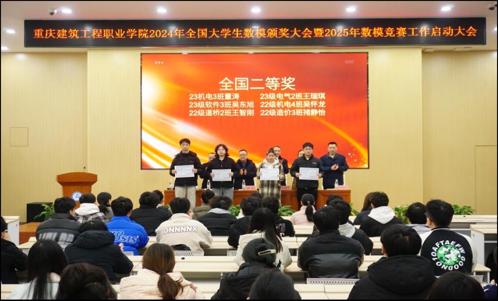 1月7日中午,學(xué)校2024年全國大學(xué)生數(shù)模競賽頒獎大會暨2025年數(shù)模競賽工作啟動會在學(xué)校思政廳召開。學(xué)校副校長楊旗出席會議,實驗實訓(xùn)中心、基礎(chǔ)教學(xué)部、教務(wù)處相關(guān)負(fù)責(zé)人、學(xué)校數(shù)學(xué)建模競賽指導(dǎo)教師團隊、2024年數(shù)模競賽獲獎團隊、數(shù)模協(xié)會成員及廣大的數(shù)學(xué)愛好者們參加會議。