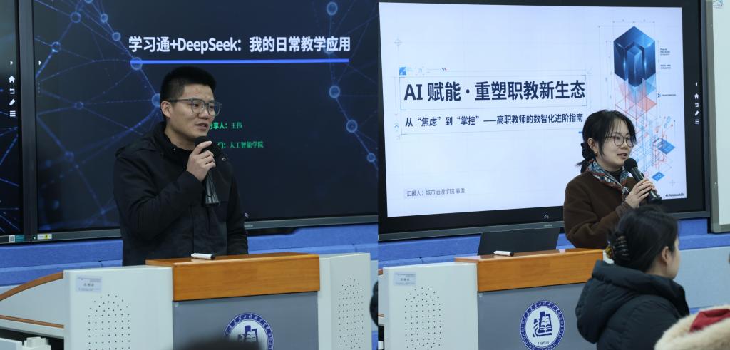 活動(dòng)打破傳統(tǒng)講座模式,采用“戰(zhàn)隊(duì)闖關(guān)”的互動(dòng)形式開展。教師們通過“緣分分組”迅速組建四大戰(zhàn)隊(duì),在集體智慧中確定了富有創(chuàng)意的隊(duì)名與組長。在隨后的“先鋒分享”環(huán)節(jié),人工智能學(xué)院王偉老師以《學(xué)習(xí)通+DeepSeek:我的日常教學(xué)應(yīng)用》為題,分享了實(shí)用高效的智慧教學(xué)組合策略;城市治理學(xué)院袁俊博士從數(shù)字教學(xué)改革前沿出發(fā),提供了兼具創(chuàng)新性與嚴(yán)謹(jǐn)性的AI工具包與教學(xué)思路,為后續(xù)闖關(guān)活動(dòng)注入了靈感。