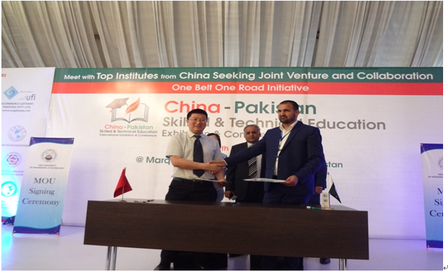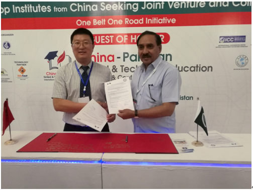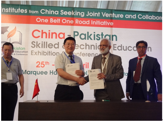 在展覽會(huì)上,雙方通過(guò)“一對(duì)一”交流與資源訴求,我校與Hazza Institute of Technology、Leading Institute of science and Technology等巴方5家專業(yè)教育機(jī)構(gòu)及院校簽訂了合作意向框架協(xié)議。雙方的合作模式得到了主辦單位--中國(guó)(巴基斯坦)投資貿(mào)易促進(jìn)會(huì)唐吉?jiǎng)P會(huì)長(zhǎng)的肯定,也贏得了巴方院校與企業(yè)的認(rèn)可。