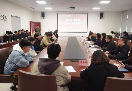12月26日上午,我校在學(xué)生活動中心201召開“慶元旦·送溫暖”學(xué)生座談會。校黨委副書記龔群英,黨委學(xué)生工作部負(fù)責(zé)人、各二級學(xué)院黨總支書記(副書記)、學(xué)工辦主任和學(xué)生代表共50余人參加了本次座談會。座談會由學(xué)工部部長盧嘉主持。