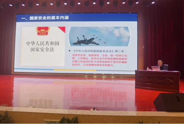 啟動(dòng)儀式上,保衛(wèi)處處長(zhǎng)郭高作動(dòng)員講話。保衛(wèi)處劉萬(wàn)良老師圍繞“總體國(guó)家安全觀·創(chuàng)新引領(lǐng)10周年”主題,就國(guó)家安全的基本內(nèi)涵、總體國(guó)家安全觀、當(dāng)前我國(guó)國(guó)家安全面臨的主要挑戰(zhàn)、高校國(guó)家安全工作面臨的嚴(yán)峻形勢(shì)、危害國(guó)家安全的具體行為、危害國(guó)家安全罪等內(nèi)容,用具體、鮮活的案例,為參會(huì)師生送上一堂精彩的國(guó)家安全教育課。通過(guò)專題講座,進(jìn)一步增強(qiáng)師生國(guó)家安全意識(shí),為維護(hù)國(guó)家安全營(yíng)造良好的法治氛圍。