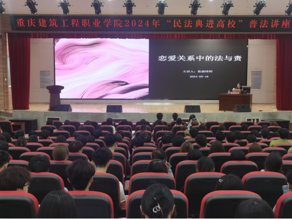 5月16日中午,學校在圖書館5樓報告廳舉辦2024年“民法典進高校”普法講座。本次講座由南岸區(qū)司法局、南岸區(qū)普法辦、南岸區(qū)峽口鎮(zhèn)人民政府聯(lián)合主辦,由學校負責承辦。南岸區(qū)司法局政治處主任胡穎和師生代表500余人參加講座,保衛(wèi)處處長郭高主持講座。