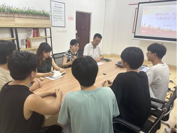7月8日下午,學(xué)校副校長陳依民深入信息工程學(xué)院學(xué)生社區(qū)黨團(tuán)活動(dòng)室與學(xué)院師生代表開展座談交流活動(dòng),共同探討青年成長話題。學(xué)院黨總支書記別牧、黨總支副書記李雪、輔導(dǎo)員、學(xué)生骨干等師生代表15人參加座談會。