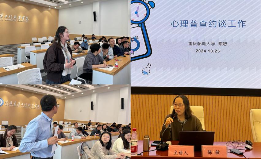 本次培訓(xùn)由重慶郵電大學(xué)心理發(fā)展指導(dǎo)中心副主任陳敏教授主講。陳教授結(jié)合我校心理普查約談工作實(shí)際情況,從心理普查量表解讀、約談工作具體流程、談心談話方法技巧以及后續(xù)分類干預(yù)處置等方面,全面系統(tǒng)、細(xì)致入微地進(jìn)行了講解。在交流互動(dòng)環(huán)節(jié),陳教授憑借深厚的專業(yè)知識(shí)和豐富的實(shí)踐經(jīng)驗(yàn),為輔導(dǎo)員們答疑解惑,大家紛紛表示受益匪淺。