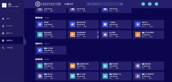 我院“智慧校園綜合服務(wù)平臺(tái)”是由一站式服務(wù)大廳、移動(dòng)智慧校園平臺(tái)組成,其是在學(xué)校數(shù)據(jù)治理、解決信息孤島的基礎(chǔ)上進(jìn)行開發(fā),該平臺(tái)實(shí)現(xiàn)了表單電子化、流程自動(dòng)化,辦事服務(wù)在線化、移動(dòng)化,秉承“數(shù)據(jù)多跑路、師生少跑腿”的服務(wù)理念,打破時(shí)間、空間上的限制,將多部門不同業(yè)務(wù)在統(tǒng)一的平臺(tái)上面向師生提供便捷服務(wù),實(shí)現(xiàn)業(yè)務(wù)、流程和數(shù)據(jù)的高度融合、有效共享與智能應(yīng)用,提高師生的使用體驗(yàn)和辦事效率。