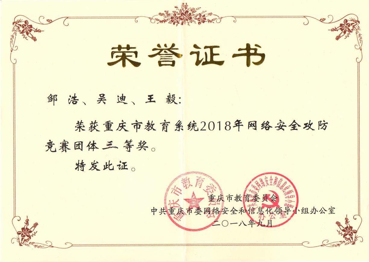 9月18日上午,由重慶市教育委員會、中共重慶市委網(wǎng)絡安全和信息化領導小組辦公室主辦的“2018年重慶市教育系統(tǒng)網(wǎng)絡安全攻防大賽”決賽在重慶師范大學開賽。本次比賽旨在深入貫徹落實黨的十九大精神和習近平總書記網(wǎng)絡強國戰(zhàn)略思想,切實提高全市教育系統(tǒng)的網(wǎng)絡安全意識、防護水平和應急處置能力,營造安全、健康、文明的網(wǎng)絡環(huán)境。