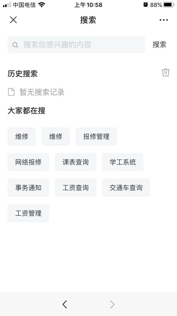 頂部位快捷搜索框,可以快速定位服務(wù),底部為快捷菜單欄