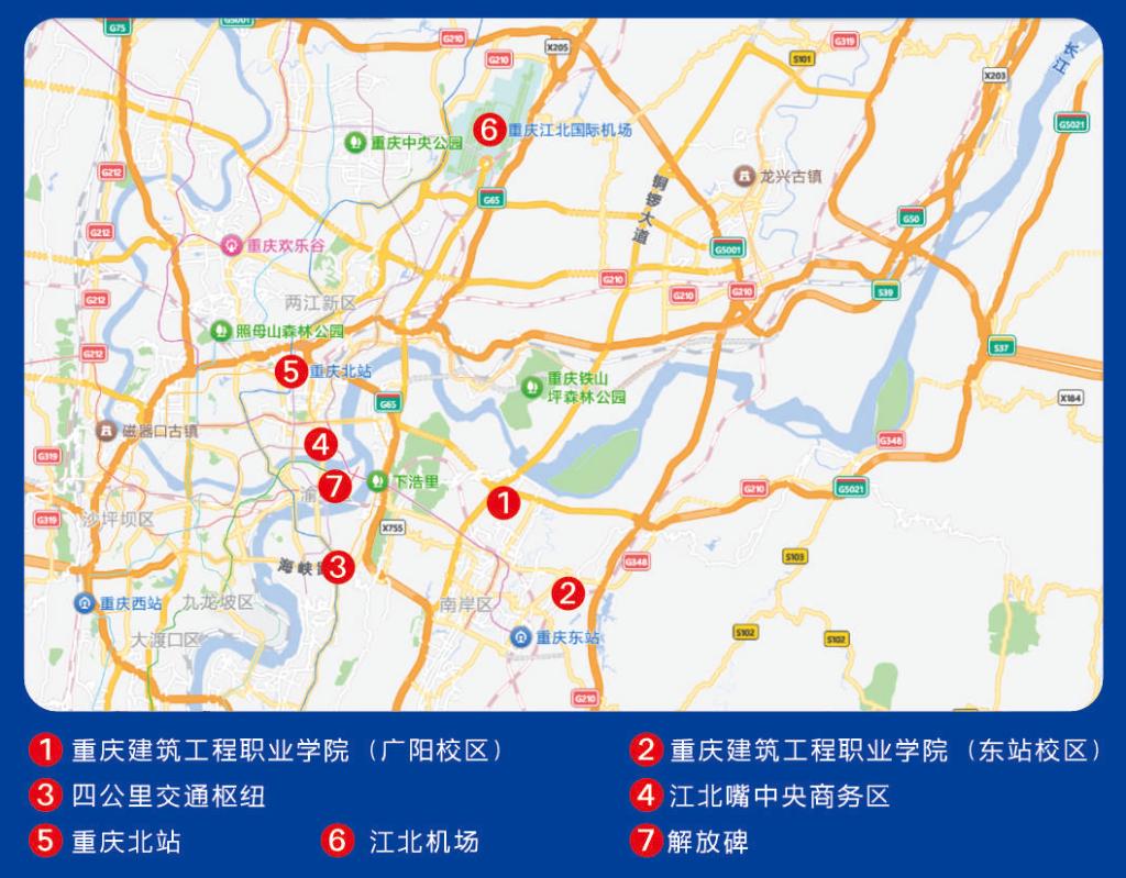 廣陽校區(qū):重慶市南岸區(qū)梨花大道857號(hào),智能建造學(xué)院、城市治理學(xué)院、智能制造學(xué)院、交通運(yùn)輸學(xué)院。