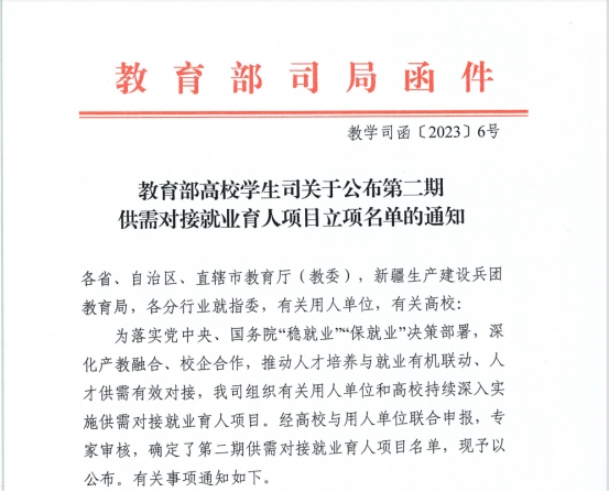 4月6日,教育部高校學(xué)生司公布《教育部高校學(xué)生司關(guān)于公布第二期供需對接就業(yè)育人項(xiàng)目立項(xiàng)名單的通知》(教學(xué)司函〔2023〕6號),我校共有7個(gè)項(xiàng)目獲得立項(xiàng)。